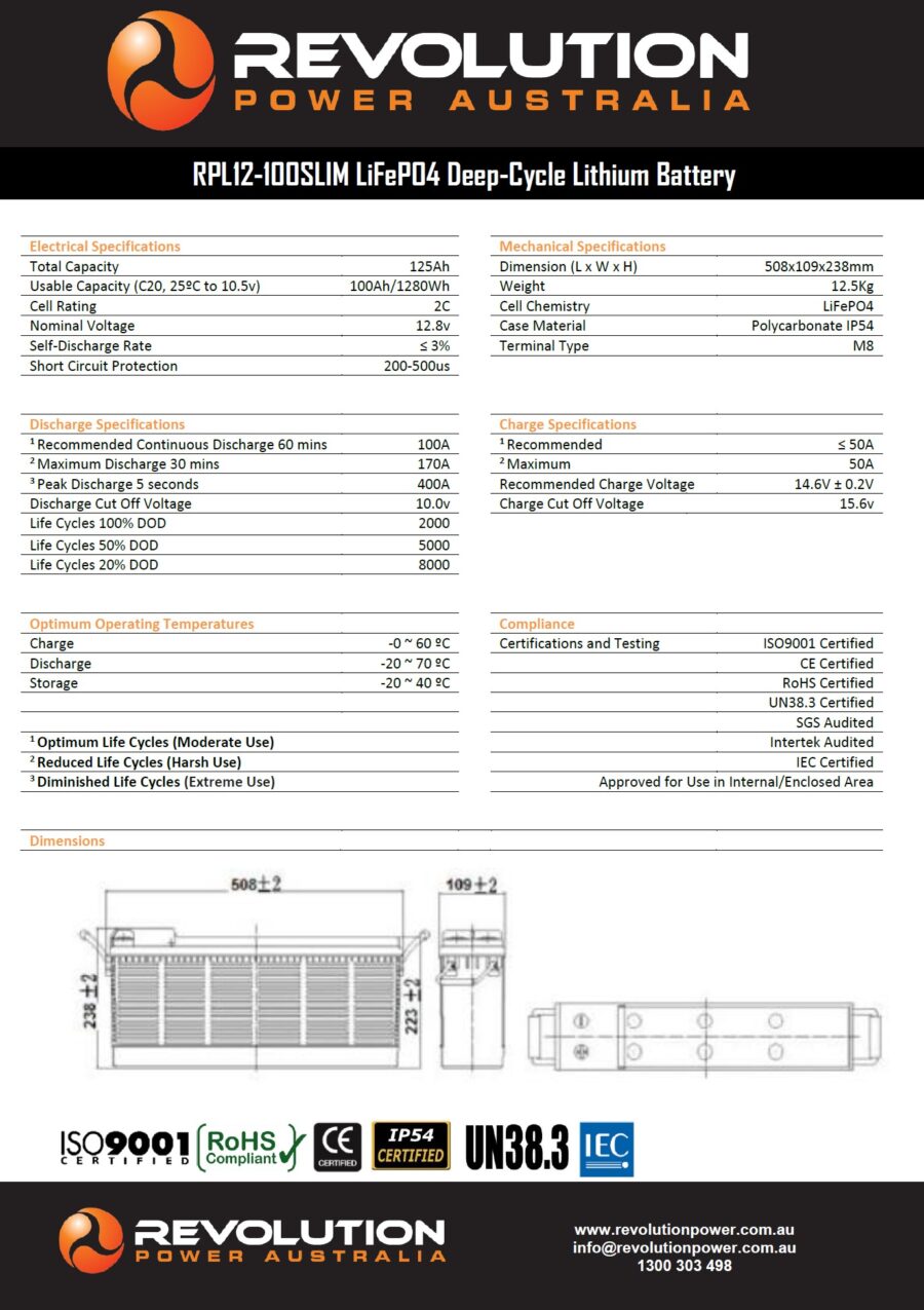 Revolution Power Australia’s lithium batteries are the ultimate in deep-cycle battery technology delivering unrivalled performance and product life span. Australia’s most advanced state of the art Battery Management System (BMS) inbuilt ensures peace of mind, when it comes to battery protection and safety.