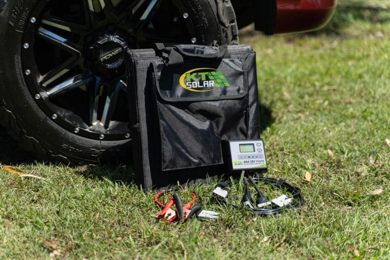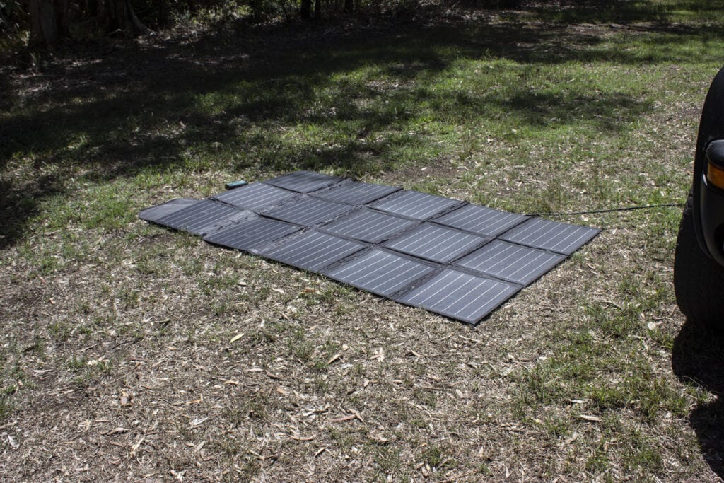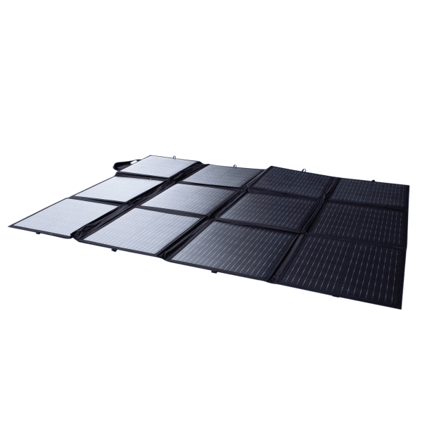 The 300W 12V Portable Solar Blanket which folds down to a compact 355 x 500 x 70mm, making it an easy folding brief-case style, perfect for transportation.