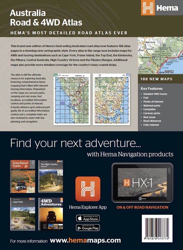 This edition contains more mapping than ever before, which is enhanced by a striking new cartographic style that’s incredibly easy to read. Included in this is up-to-date mapping for Australia’s biggest 4WD destinations: Cape York, Fraser Island, the Top End, the Kimberley, the Pilbara, Central Australia, High Country Victoria, and the Flinders Ranges.