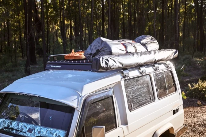 The TLRAM is designed to securely mount awnings to your Fully enclosed model Tracklander rack.