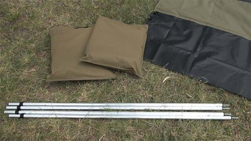 The canvas used in the walls is a heavy duty 260gsm rip-stop polyesters canvas that is acrylic impregnated for waterproofing. There is a 50mm wide Velcro strip across the top edge for attaching to the awning and the walls are attached to each other using a quality YKK plastic zip. The walls have a large 400mm high 600gsm PVC ‘mud skirt’ running around the base of the walls, the variable tie down points for the walls are stitched into the PVC skits to accommodate different vehicle heights. The poles that are supplied with the walls extend to a maximum height of 2.6m, these are inserted into the pre-drilled holes in the trussed arms of the awning, and for the rear and front arm there is a loop supplied that is used to secure the pole. The kit comes with a large canvas storage bag for the walls and the poles come in their own canvas bag. All storage bags are made from our heavy-duty rip stop canvas and have YKK zips.