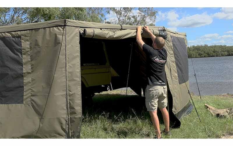 The kit also comes with a unique privacy feature that enables you to attach one of your walls directly to one of the trussed awning arms to section off an area underneath the awning to use as either a changing area, shower or WC.