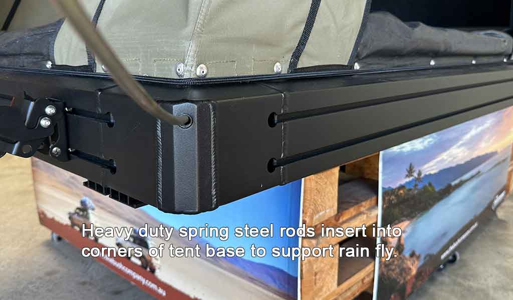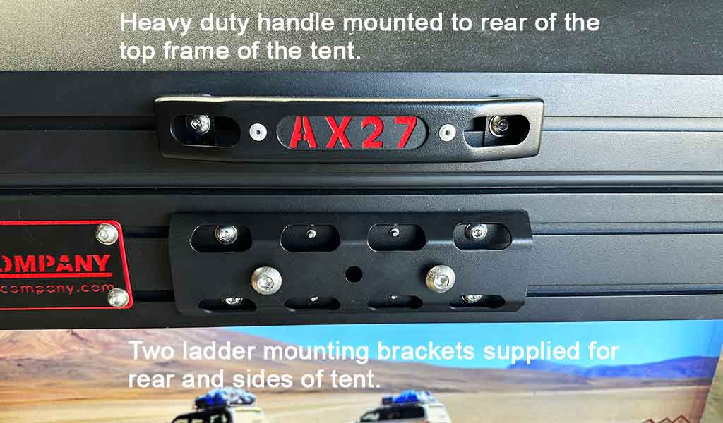 With the AX27™ Clamshell Rooftop Tent there is no need to compromise with losing your roof loading space, the tent roof can hold up to 200Kg in the closed position and will still fully open and remain open with up to 50Kg mounted on the roof.  There’s a wide range of accessory brackets available for mounting everything from solar panel brackets, shovel mounts, Hi-lift jacks, and don’t forget the all important fan bracket to mount a Sirocco fan to the inside of the tent to keep you cool on those warmer nights.