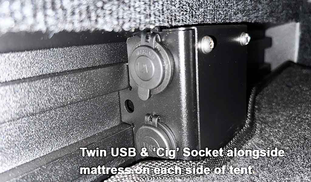 The AX27 Clamshell Roof top Tent is the ultimate in comfort, design and convenience and sets new benchmarks in quality, practicality and reliability. Hosting a range of industry leading features including an extruded aluminium alloy frame, double layered canvas skin, a large rainfly at sides and rear, full length roof mounting rails, and an electrical package.  The massive 1.7m opening height makes the tent feel spacious and roomy inside and means that you can sleep with you head at either end, plus to make sure you get a great night’s sleep the 80mm thick mattress is double layered with one layer of super high density foam and the other layer medium density foam, all enclosed in a durable and removable canvas cover.  When closed there is still plenty of space inside the AX27™ to store all of your bedding, and the double roof storage and side pockets provide heaps of space for your personal items.  The electrical package provides two 12V Cig socket outlets and two twin USB sockets mounted to the roof of the tent as well as a moveable tri-colour LED light, the connection to your vehicle’s power is a 50AMP Andersen plug mounted beneath the tent.
