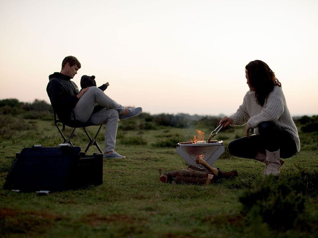 – A BBQ/Fire Pit that is designed to pack flat at 1.5 inches / 38mm thick.