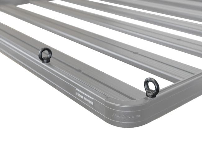 • These easy to use tie down rings quickly and easily mount to a Front Runner Rack via the t-slots on the top, the bottom, and the side rails of the rack.