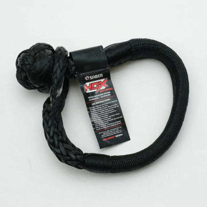 Whilst Saber Offroad have released heavy duty soft shackles in the past, nothing compares to the strength and durability of our HDX – 24,000KG Technora Bound Soft Shackle. Whilst only 10% larger diameter than our 17,000kg Bound Shackle, it is an amazing 40% stronger. This is achieved through the use of our proprietary blended coated fibre, SaberPro, and our latest shackle design. With this level of strength, this shackle is ideal for extra-large 4×4’s, 4×4’s towing, light-medium commercial vehicles, and some military, agriculture and mining applications.