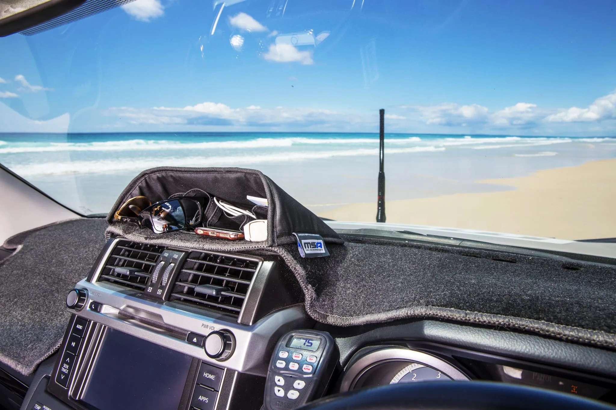 Velcro or adhesive tape base options supplied to suit carpeted or non-carpeted dashboards.