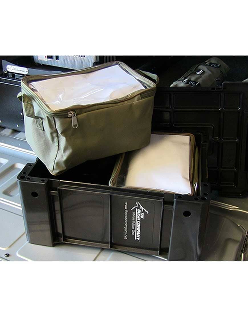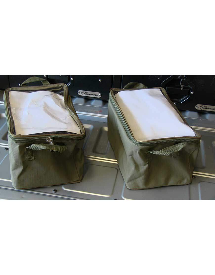 The Divizers fit into The Bush Company’s Pioneer Box separating it into four sections, two medium and two small, allowing for some expansion when packed. They can also be used to divide storage in a roller draw system in your vehicle.  The storage bags can be used for storing food items, tools, clothing, recovery gear, in fact whatever you need.