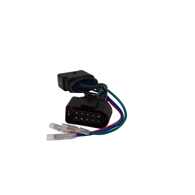 Remove the existing OEM 10 pin connector from the back of the headlight (left or right side) there is a locking tab that must be depressed while removing the connector