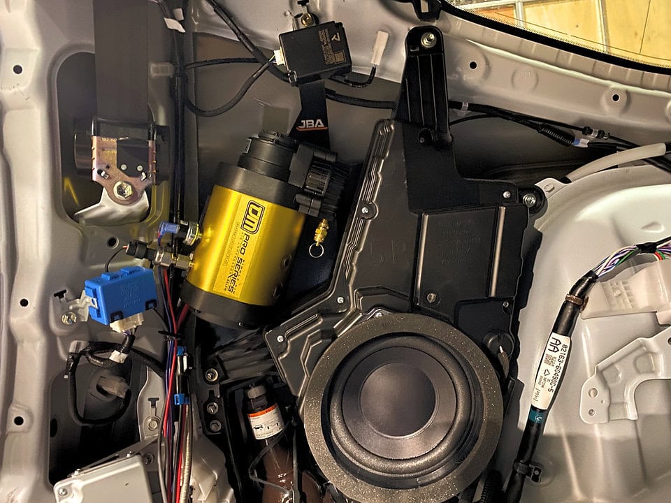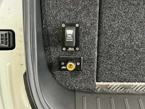 If you have the larger subwoofer model or if you want to fit a TJM twin compressor and a tank, the JBA-CB231 bracket can be used but does still require the rear subwoofer to be removed.