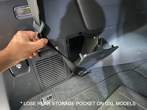 - Rear storage compartment on GXL needs to be removed to fit bracket (front cover is retained).