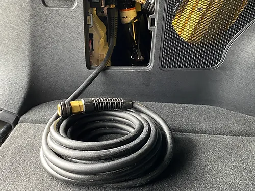 - Mounts behind the passenger side quarter panel