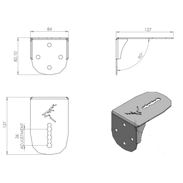 Made from stainless steel in a powder coat black finish, the bracket has pre-drilled slots for M8 or M10 bolts to mount your lights. The Light Bar Bracket is easy to fit to the The Bush Company’s tents using the ‘Ezi-Solts’ in the side of the tent.