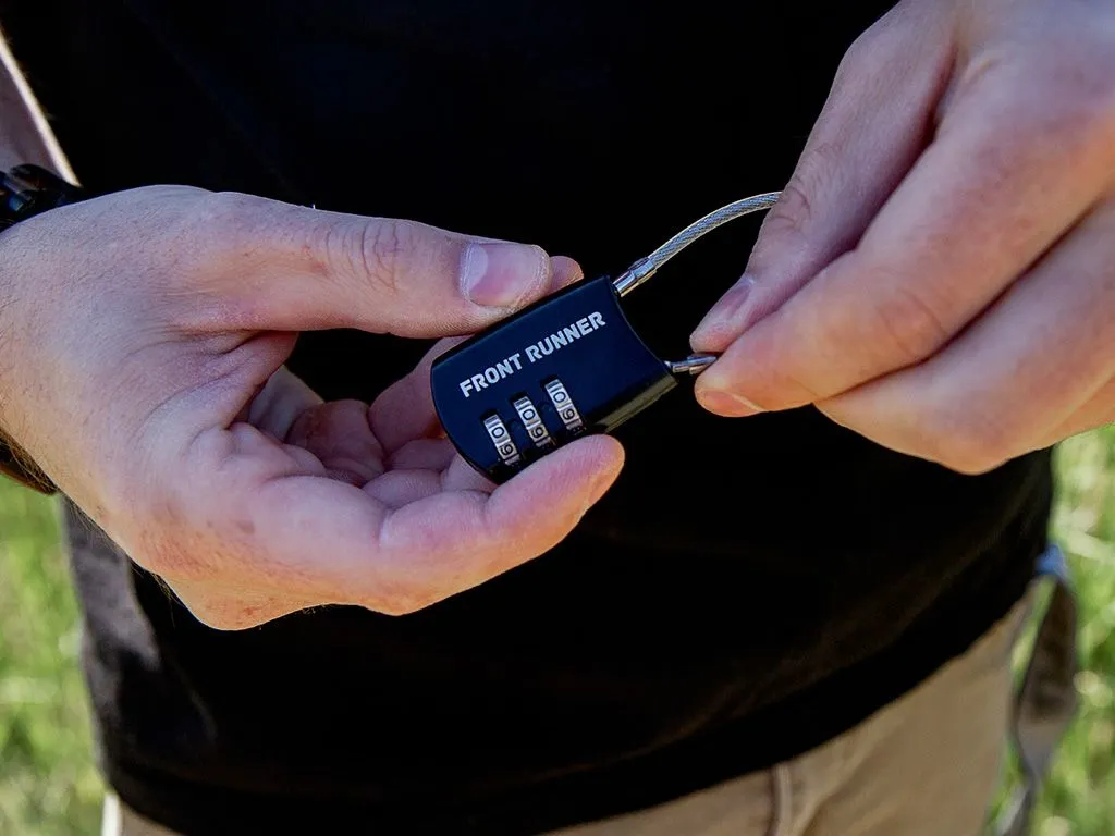 - Locks Front Runner Rack accessories for holding gear like Tables, Water Tanks, Hi-Lift Jacks, Axes, Wolf Packs and more.