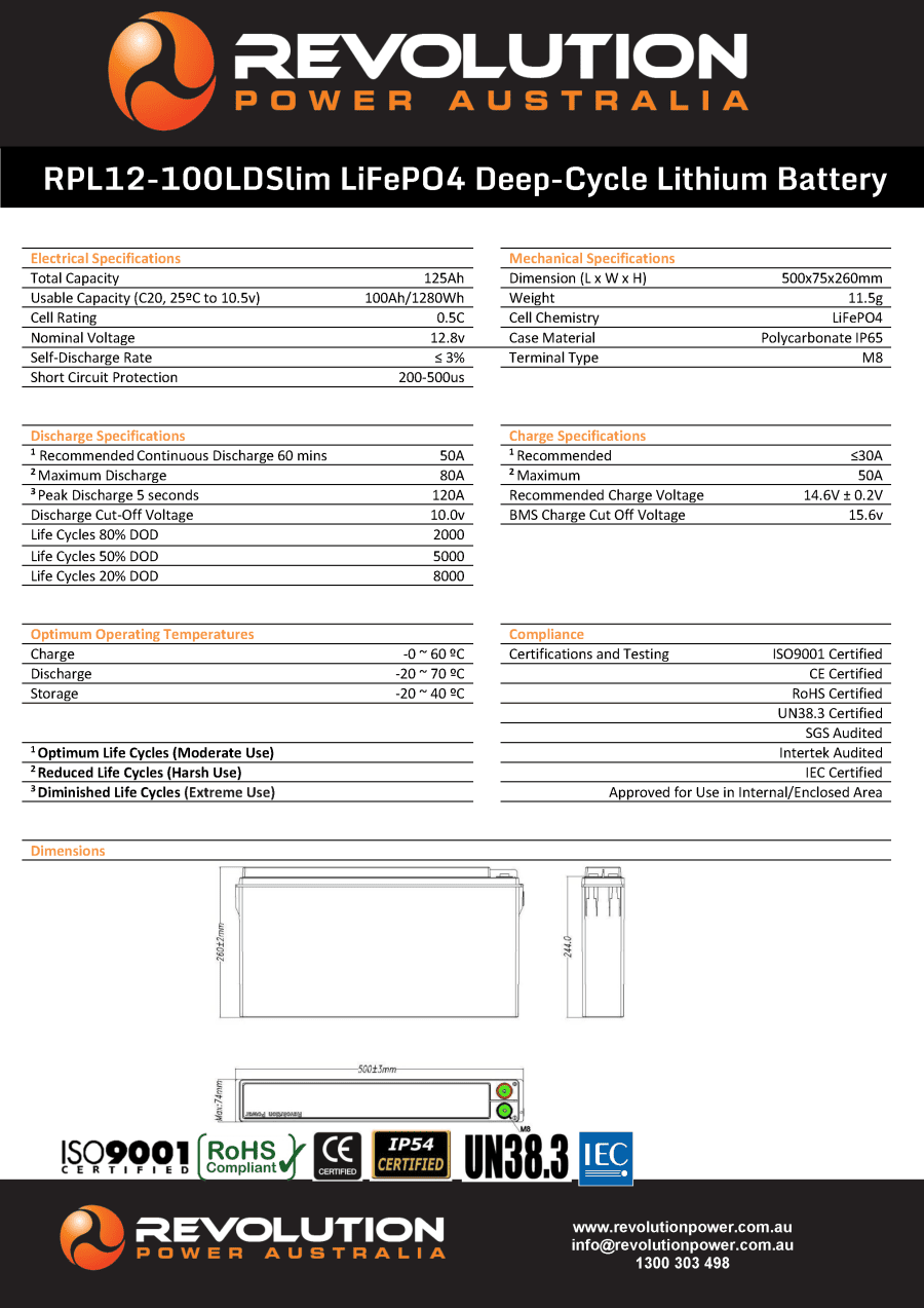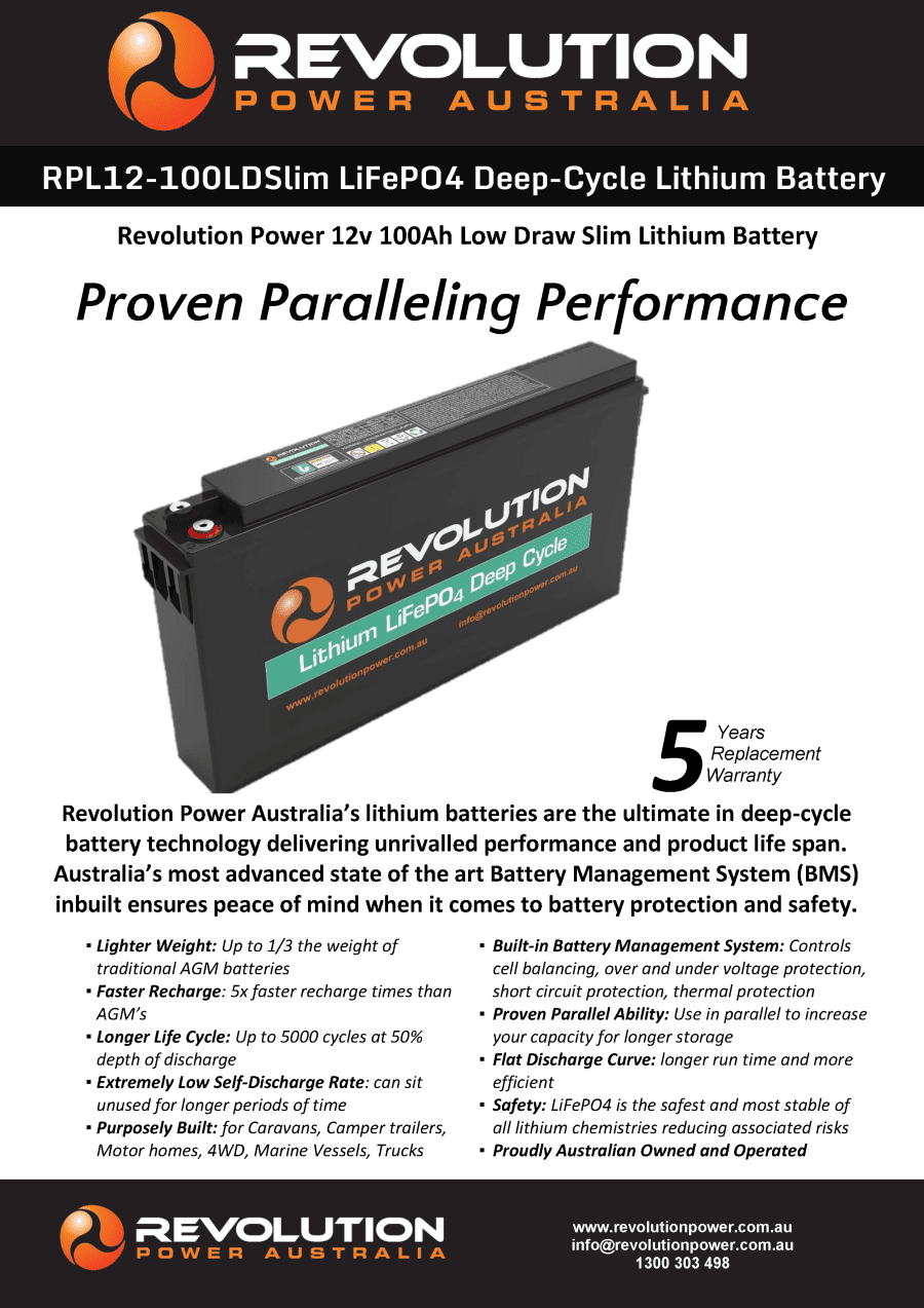 Revolution Power Australia’s lithium batteries are the ultimate in deep-cycle battery technology delivering unrivalled performance and product life span. Australia’s most advanced state of the art Battery Management System (BMS) inbuilt ensures peace of mind, when it comes to battery protection and safety.