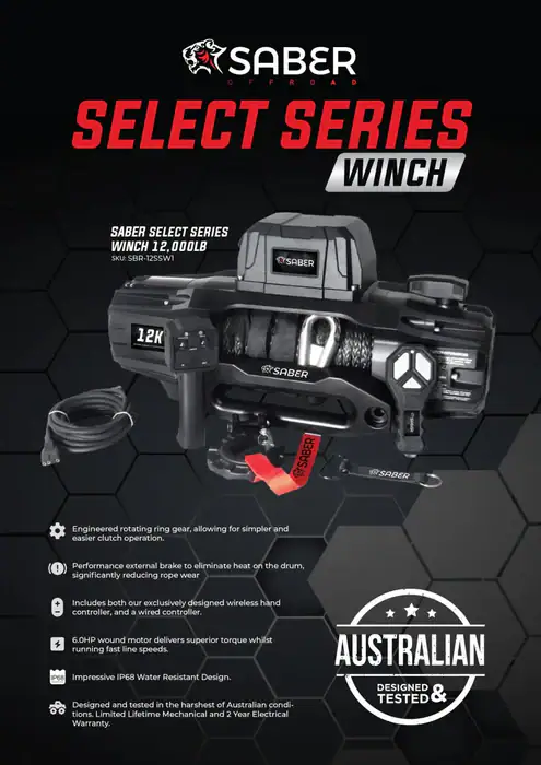 - Built tough and tested in the harsh Australian outback, the Saber Winch is engineered to handle the most demanding and extreme environments. From scorching heat, intense humidity and water crossings to rugged off-road terrain, this winch has been rigorously tested to ensure it can withstand the toughest conditions.