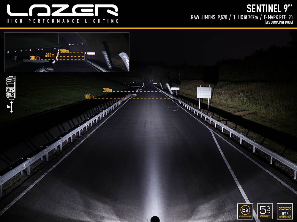 Sentinel Blacklamps, produce performance lighting. Emitting 9,529 raw lumens, the lamps deliver 1 lux reaching to over 700m; impressive in itself, but considering the 52 degrees horizontal beam angle, this is a product that has been designed to deliver maximum visibility for all manner of road and off-road use.