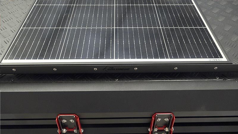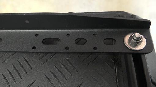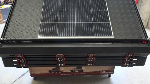 The Solar Panel Bracket is sold as a pair and are constructed from 2.5mm thick stainless steel with a black powder-coat finish. The brackets are mounted to the rails on the roof of the tent using the laser cut mounting holes and supplied stainless steel bolts. The solar panel can be secured to the brackets using the supplied rivets through the pre-drilled holes in the bracket, you will need to drill the holes in the edge of the solar panel frame as required. The solar panel mounting brackets ensure that there is still airflow underneath the panel which helps to maintain the output efficiency of the panel.