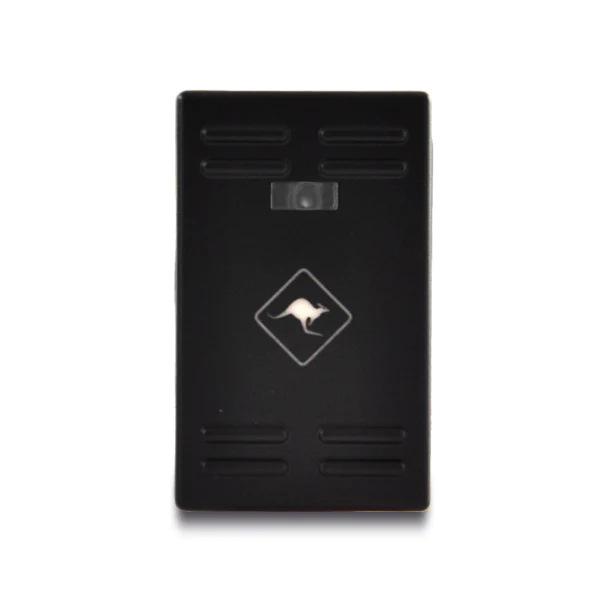 The Roo logo illuminates white via the dash light circuit, once the switch is pushed on, the upper clear window illuminates blue.