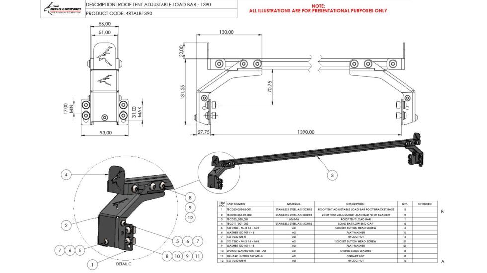 The Adjustable Load Bar is sold in singles units and includes one 1390mm long load bar and brackets that can be easily mounted to the ‘Ezi-slot’ channels built into side of the roof of the LX27 Clamshell Rooftop Tent. Each bar is rated to hold 100Kg (220lbs)