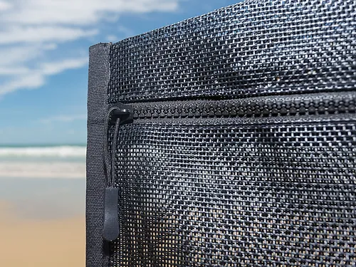 Tiegear’s gear bag is made with a durable canvas base so it can be thrown around camp without an issue, the top of the bag is made with strong mesh to alow your pegs and ropes to dry out if they get soaked which prevents mold from forming. The bag will fit 6 guy ropes, 6 springs and 6 pegs and will pack perfectly in you rear draws.
