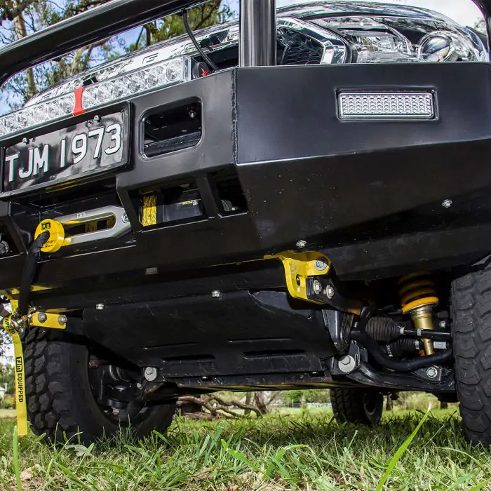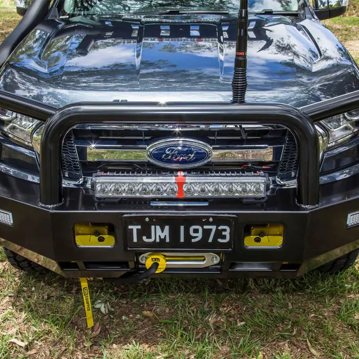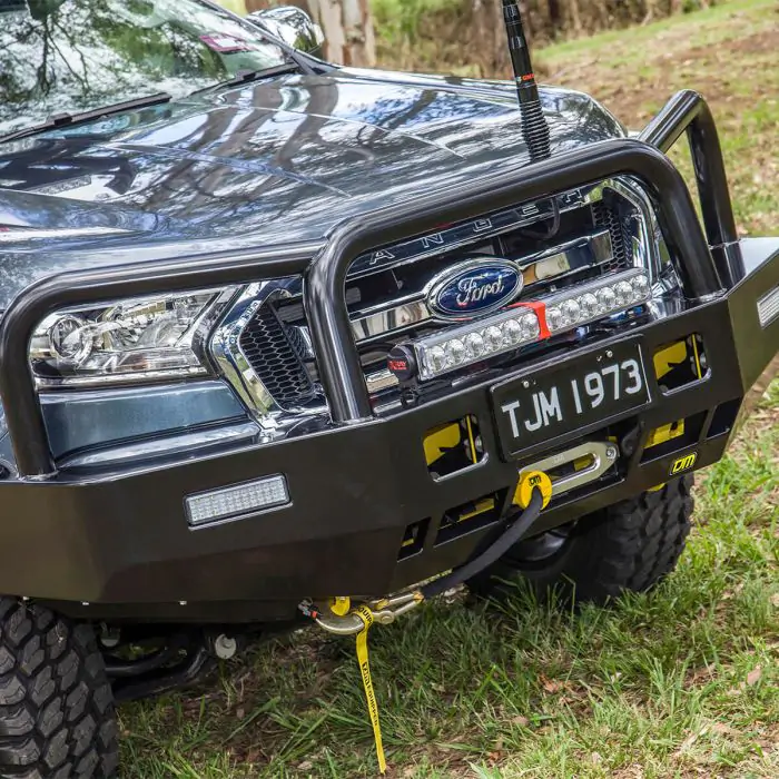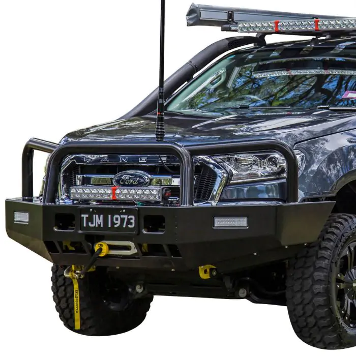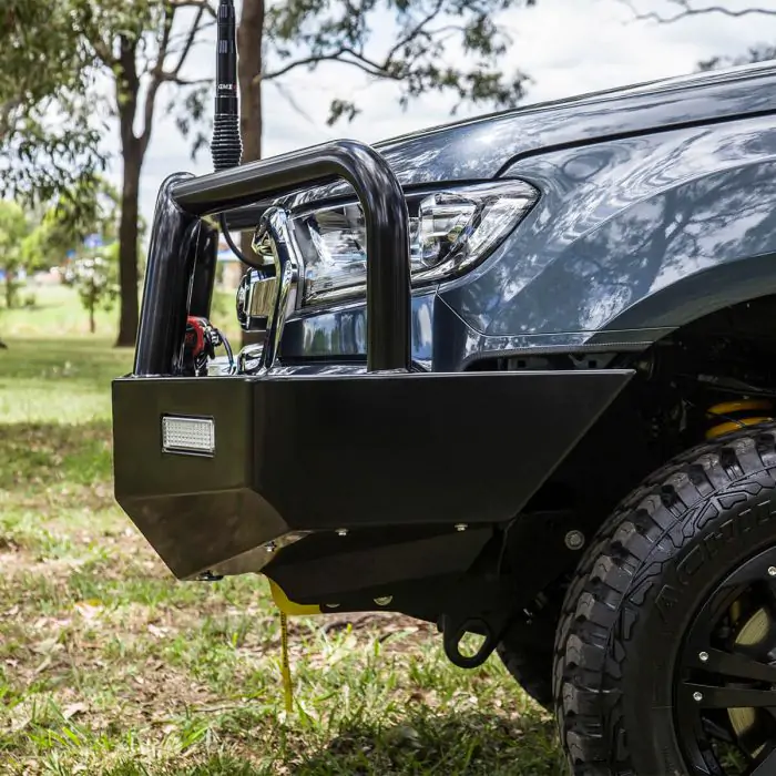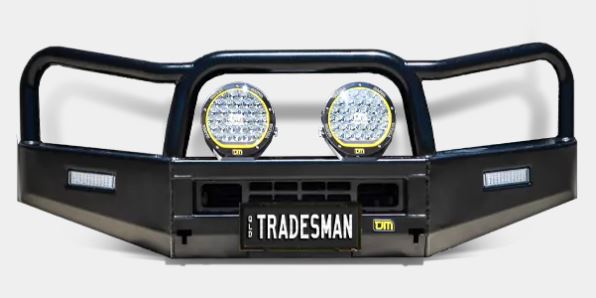 TJM’s genuine Tradesman bull bar blends style and features at a great price for your vehicle. The TJM Tradesman bull bar is 4×4 equipped with a steel winch-mount, integrated rated recovery points, LED combination indicator park lights, and reinforced T-slot recovery jack points. It’s ready to work for you with dual aerial mounts and mounting points for installing large driving lights. A stylish 76mm centre tube and 63.5mm outer tubes offer strength and help protect your vehicles drive and headlights. Tapered side-wings assist with approach angle when off-road and taking on rises in the terrain. Thick steel tubing provides first-class protection and comprehensive engineering offers peace of mind with ADR compliance and air bag compatibility.
