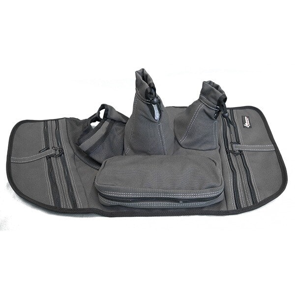Toyota Landcruiser (J70) Series 2007 – 2020 Transmission Cover from The Bush Company enables you to maximise the storage space around your vehicle’s transmission as well as providing an extra layer of protection to the gear stick boots. Made from high quality UV stabilised Italian canvas, the transmission cover has a large zipped storage pouch positioned to the rear of the gear sticks, secured with a large velcro strip for easy removal. On both sides of the transmission cover there are three zipped pockets for storage of smaller items.