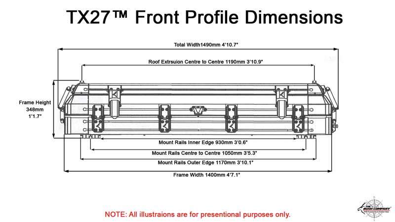 The TX27™ MAX Hardshell Rooftop Tent can be set up/packing down in 90 seconds, and incorporates The Bush Company’s many years of experience in aluminium fabrication and first-hand experience in touring/camping. Due to the size and weight of this tent, it is ideally suited to camper trailers or larger vehicles. The key specifications of the TX27™ MAX Hardshell Rooftop Tent are below and the full details are listed in the product specification tab below. To find out why we believe this is the best roof top tent on the market watch the full TX27 MAX™ product review video.