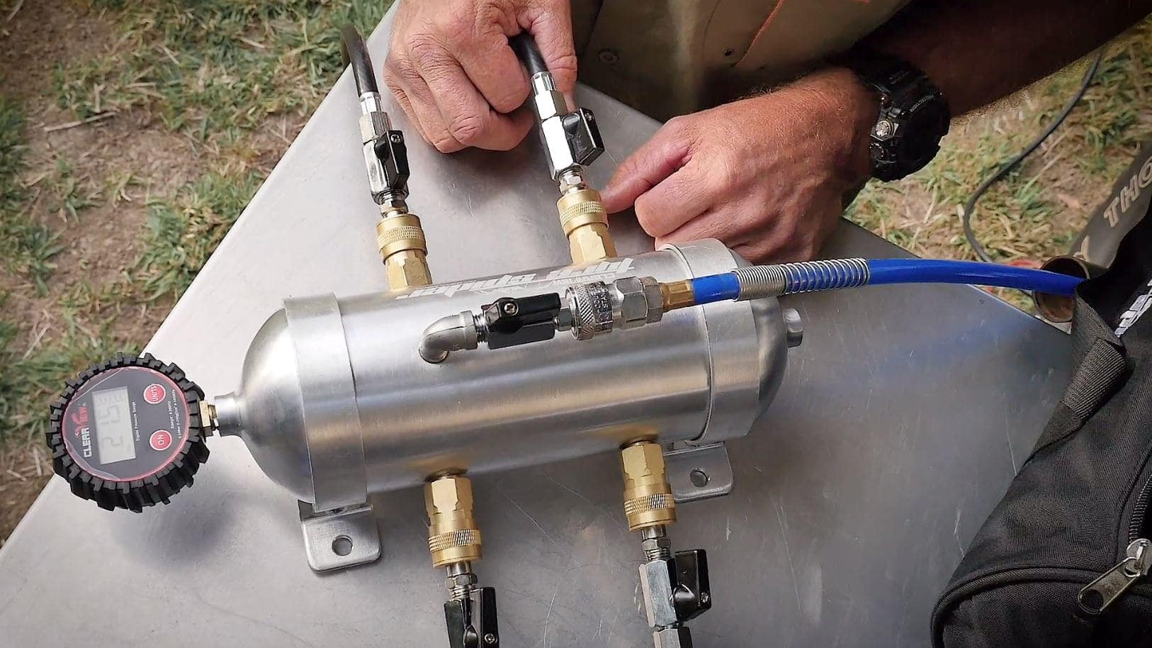 The Tyre Spider allows you to easily stagger tyre pressures across any combination of tyres via the 4 controllable inlet valves and digital pressure gauge.