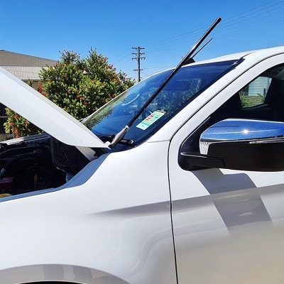 These bracket do not affect the opening of the bonnet or the operation of the window wipers. They are pressed and welded 3mm Steel and are powder coated black.