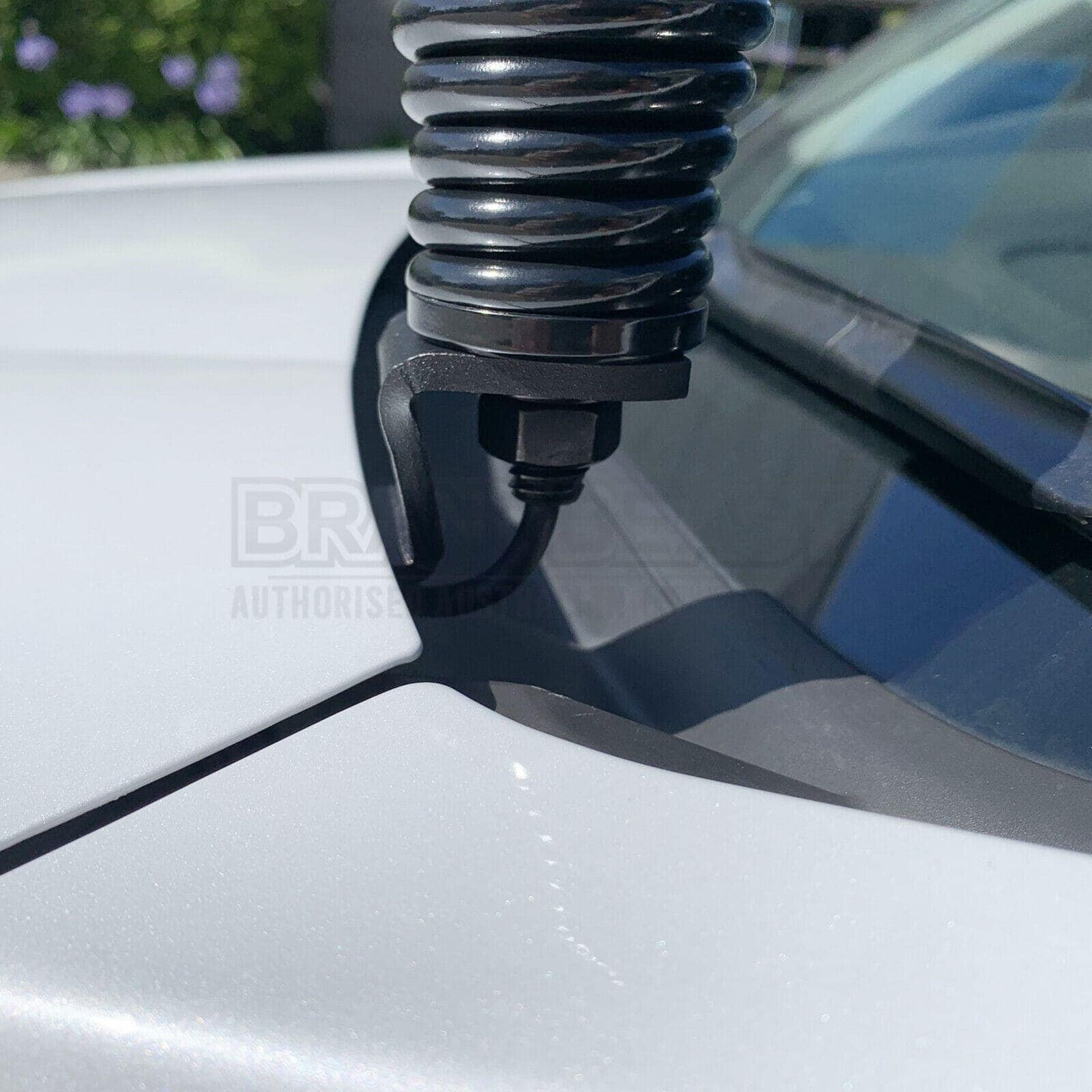 These bracket do not affect the opening of the bonnet or the operation of the window wipers. They are pressed and welded 5mm Steel and are powder coated black.