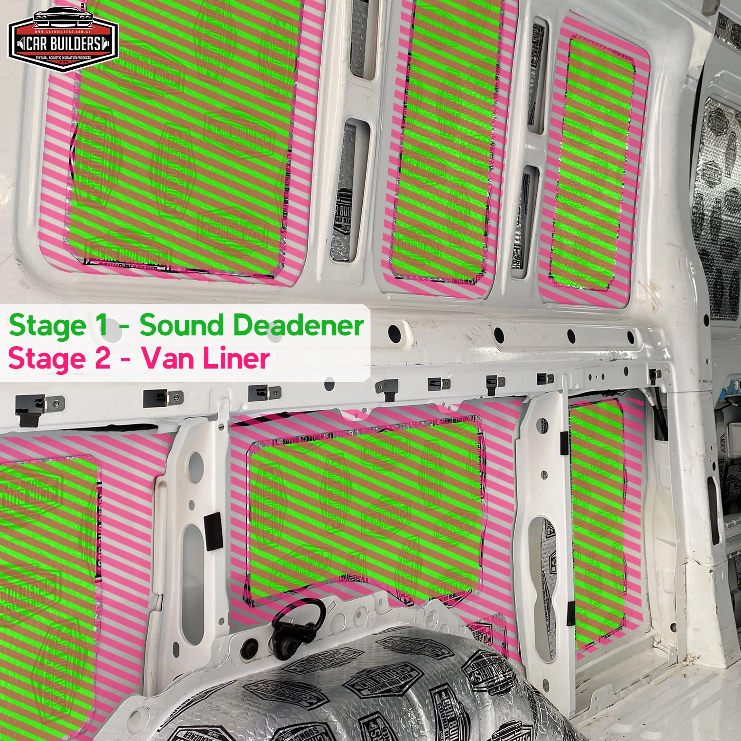 This is recommended if you are converting your van to a camper with internal walls (plywood, MDF etc). Our Stage 3 product is called Van Seal. It is a 4mm thick closed cell foam with a reflective face on both sides. It is used to create a sealed inner cocoon in your van, forming a very effective insulation barrier, further slowing heat conduction and convection. Simply line the side walls and roof with Van Seal before applying your structural panels e.g. plywood. Ensure there is an air gap between the Van Liner (stage 2) and Van Seal (stage 3).